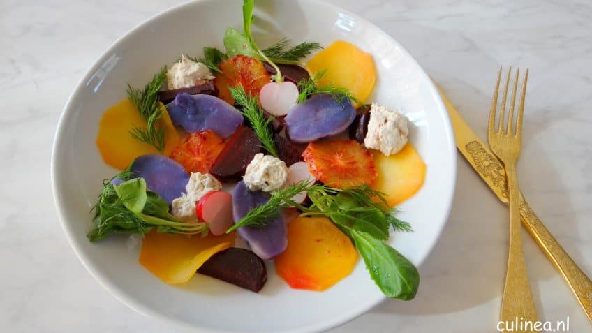 Salade Met Makreelmousse Truffelaardappel En Bietjes Culinea Nl